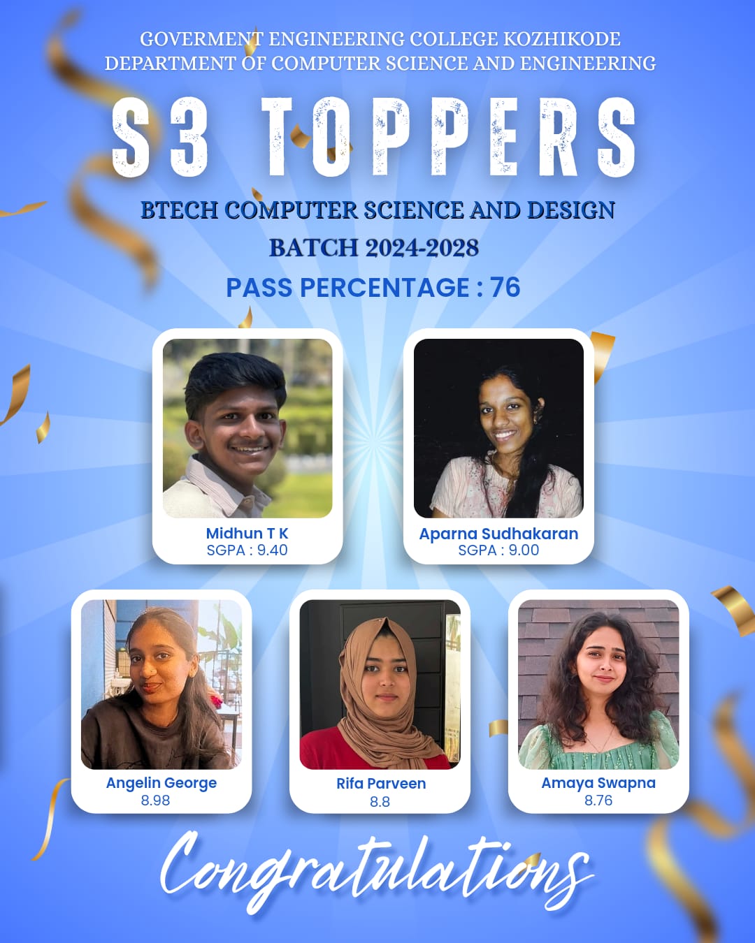| Amal Joseph, Sabari Kannan K R, Adinath, Sangeeth Krishna | Received CERD Project Funding for the project Fruit Spector | S8 | 2024-25 | ||||||