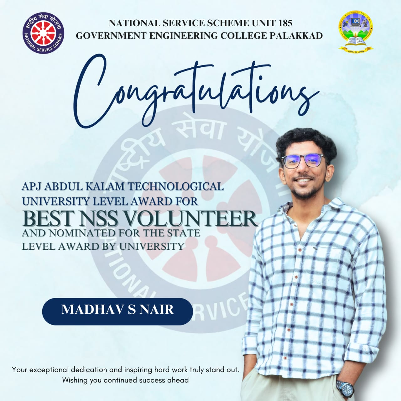 | 2) Best Male NSS volunteer - Madhav S Nair. | |