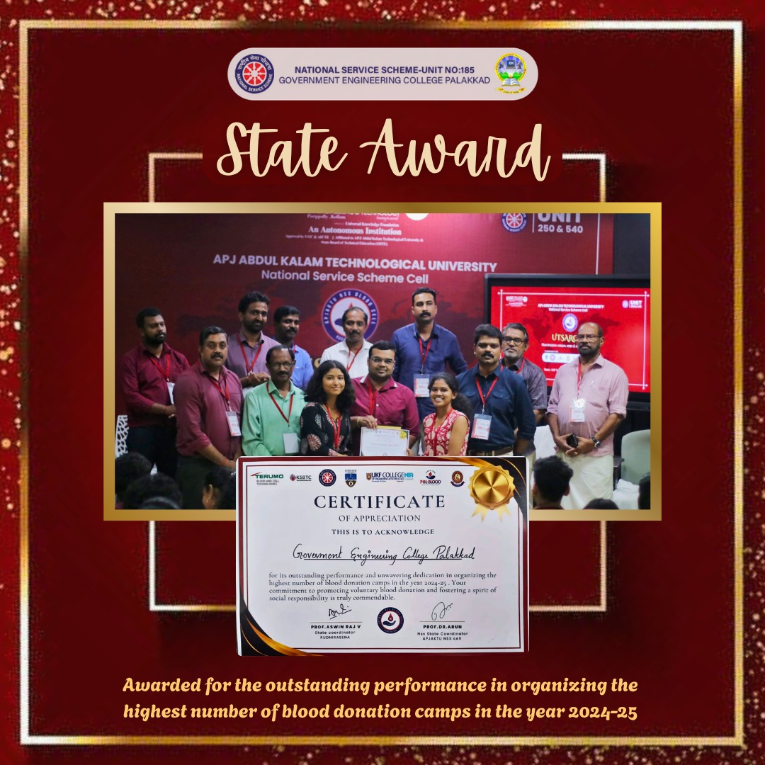 We got an award for conducting most number of blood donation camp awarded by Rudhirasena ( The flagship program of KTU NSS Cell). |